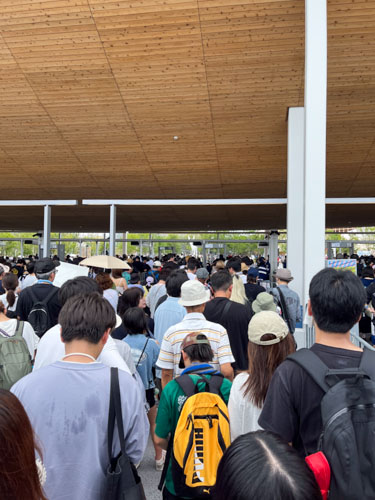 12:00からのチケットで12:00少し前に夢洲に着いたところ、ゲートにたどり着くまでに1時間くらいかかりました。これなら逆に1時間早く来れば良かった、、、、。