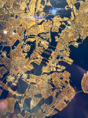 地球儀だけでなく、東京や千葉などの地図を平面図で制作した作品もありました。金箔の煌めきが夜景にも感じられてとても美しい。