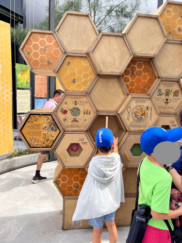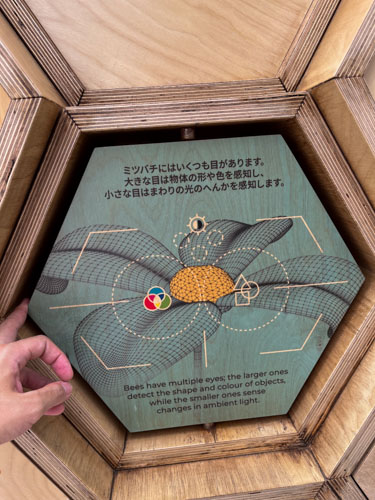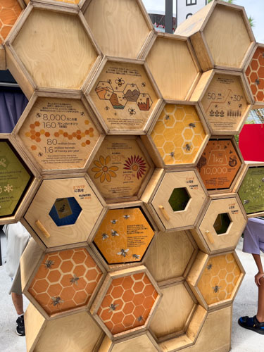 外に出ると、蜂について紹介する展示のコーナーとなっていました。