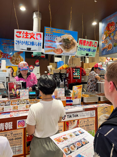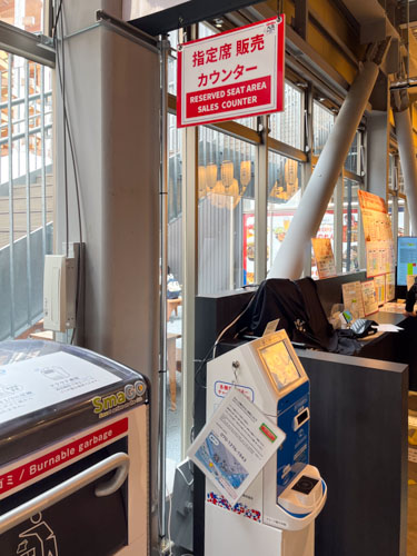 フードコートの中央の席は指定席となっていました。このような券売機で座席券を買うようです。こういった、多くのお客さんに対応するシステムも普段あまり見られないので勉強になります。