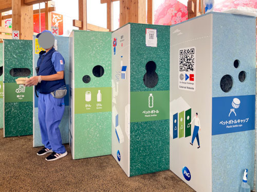 今回の万博は、ゴミの分別回収をかなり徹底していて、ゴミ箱もゴミごとに捨てる場所が細かく別れていました。