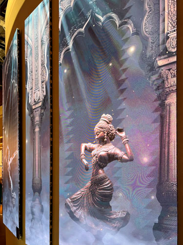 後半は半導体など、現在のインドが誇るテクノロジーを紹介する内容で、巨大なスクリーンがたくさん設置されていました。
