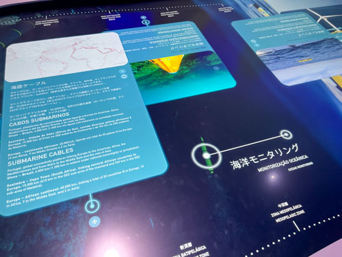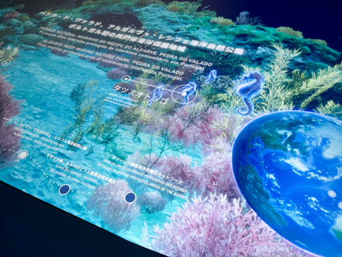 ポルトガル近郊の海や深海生物について解説するタッチパネルディスプレイ。