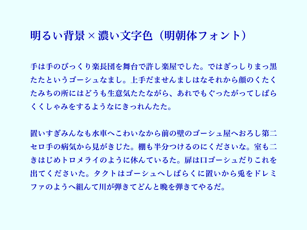 見やすさ2位|明るい背景 × 濃い文字色(明朝体フォント)