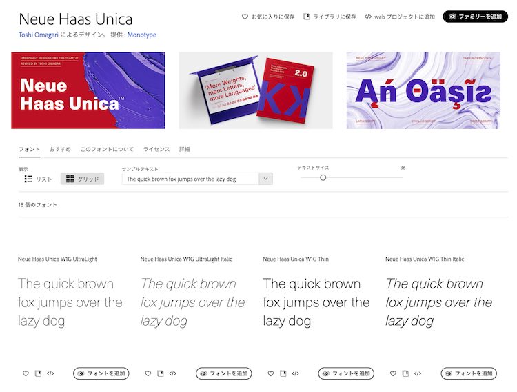 Adobe fontsのNeue Haas Unicaのページ→ https://fonts.adobe.com/fonts/neue-haas-unica