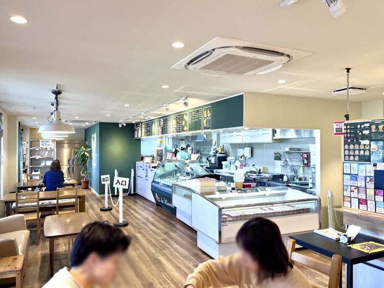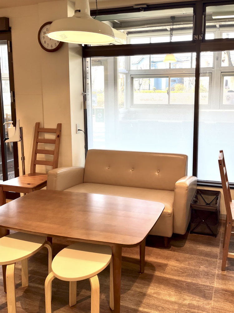 店内は暖房もしっかり効いていて、冬の散歩途中でも温かく過ごせます。また、道路沿いにはワンちゃんと一緒に過ごせる席もあり、見通しが良くとても心地よさそうな雰囲気でした。
