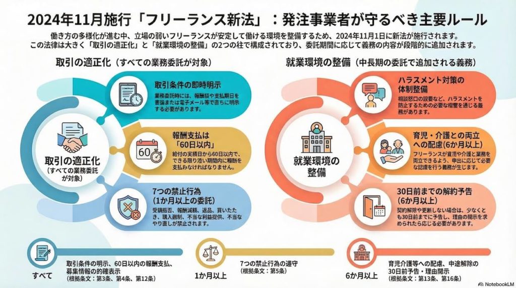2024年11月1日から「フリーランス法(特定受託事業者に係る取引の適正化等に関する法律)」が施行されました。