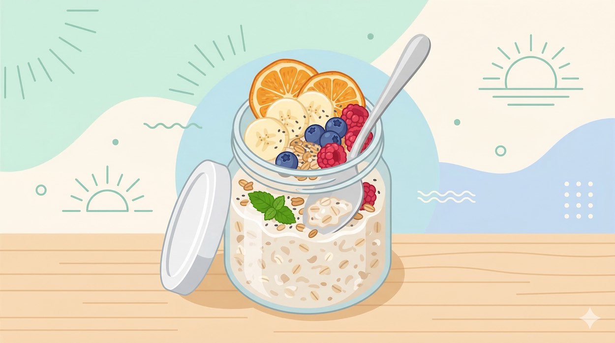 オートミールは栄養価が高く腹持ちも抜群ですが、そのままでは食べにくいのが難点。一晩じっくり寝かせることで、水分が芯まで染み込み、驚くほど柔らかく、とろりとした食感に変わります。